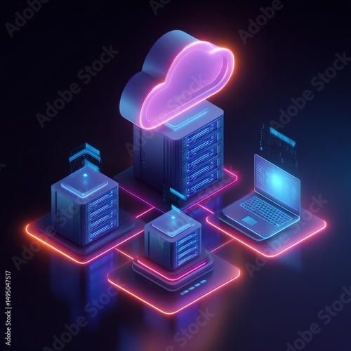 Cloud computing network isometric technology concept
