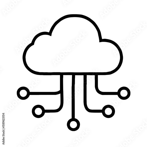 Cloud Computing Network Vector Line Art Illustration - Digital Data Storage Icon