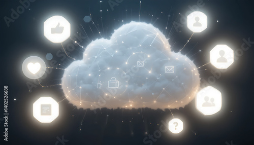 Cloud Computing Network with Social Media Icons Digital Data Storage