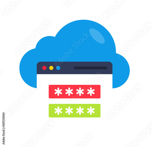 Cloud Computing Security: Modern Flat Design Login Interface Illustration