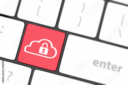 Cloud computing security concept on keyboard button close-up
