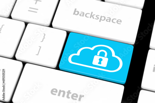 Cloud computing security concept on keyboard button close-up