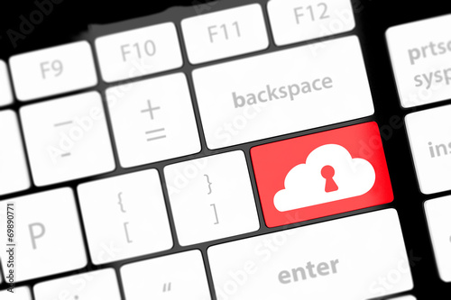 Cloud computing security concept on keyboard button close-up