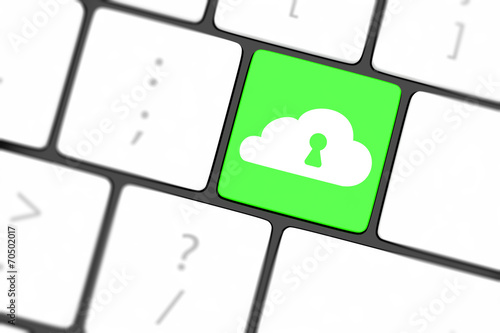 Cloud computing security concept on keyboard button close-up