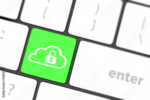 Cloud computing security concept on keyboard button close-up