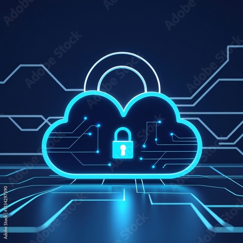 Cloud computing security with lock and padlock symbol representing safe and protected data access online