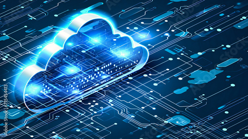 Cloud Computing Symbol: An abstract concept representing cloud computing, digital connectivity, and data exchange
