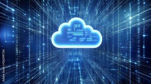 Cloud Computing Tech: Abstract Blue Cloud With Data Streams.