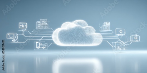 Cloud Computing Technology Concept with Digital Data Connections and Network Icons on a Futuristic Background