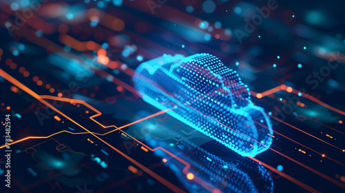 Cloud computing technology concept with digital pathways and data streams. Abstract digital background.