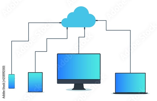 Cloud computing technology. Data synchronization on devices. Template design for hosting, cloud management, data security, server storage, web technologies.