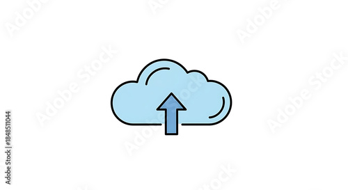 Cloud computing upload icon with blue cloud and upward arrow symbolizing data storage and transfer in modern technology