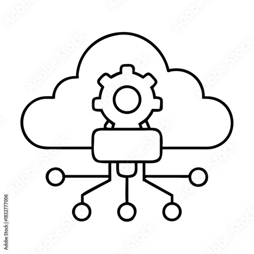 Cloud computing with gear and connection outline drawing on transparent background