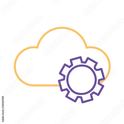 Cloud computing with gear line style icon vector design