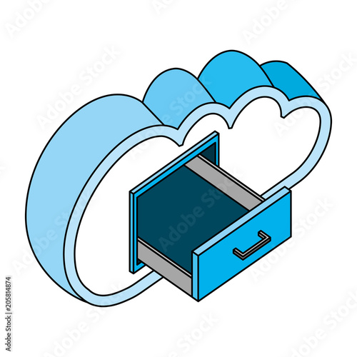 cloud computing with open drawer isometric vector illustration