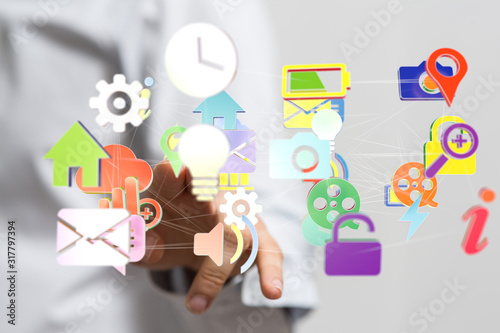 cloud connected to many objects on a virtual screen.