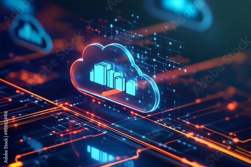Cloud Data Storage Icon on Digital Network - Futuristic Cloud Computing and Data Management