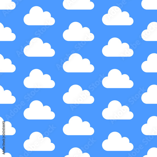 Cloud data storage seamless pattern with icons. Blue background with white clouds vector illustrations