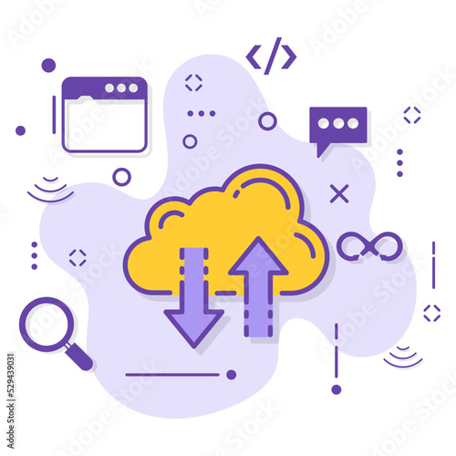 Cloud Data Sync Sign Storage Transfer Service Vector Icon Design, Burst computing and Web services Symbol, data Dashlet Stock illustration, Remote Data Transmission Concept,