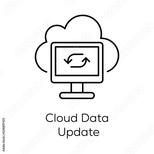 Cloud Data Update Icon – Online System Synchronization and Backup- Vector Editable Stroke Line Icon