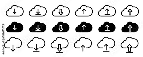 Cloud download and upload icon set. Cloud upload logo. Hosting server symbol. cloud computing vector sign.