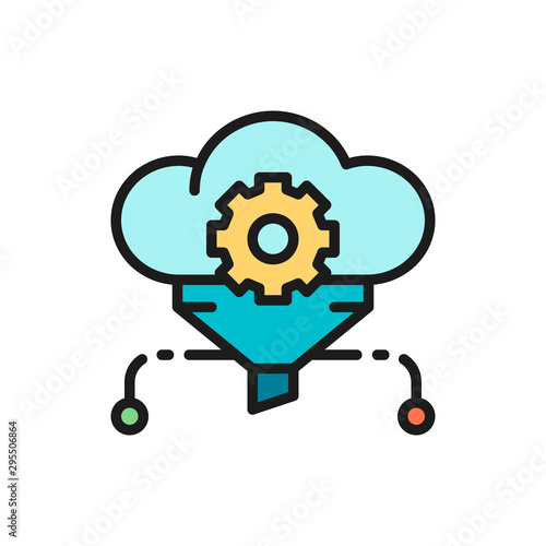 Cloud filter, big data, service database flat color line icon.