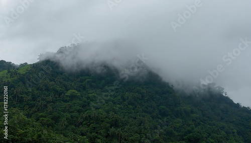 Cloud formation over lush jungle during monsoon season, highlighting erosion risk