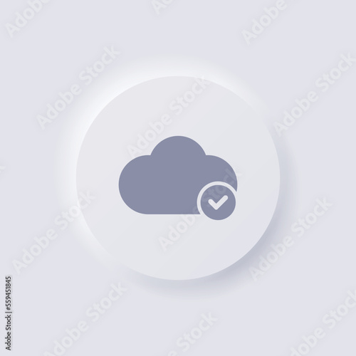 Cloud icon with Check mark symbol, White Neumorphism soft UI Design for Web design, Application UI and more, Button, Vector.