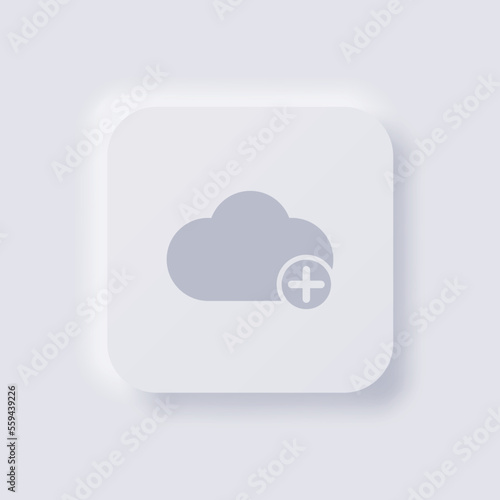 Cloud icon with plus symbol, White Neumorphism soft UI Design for Web design, Application UI and more, Button, Vector.