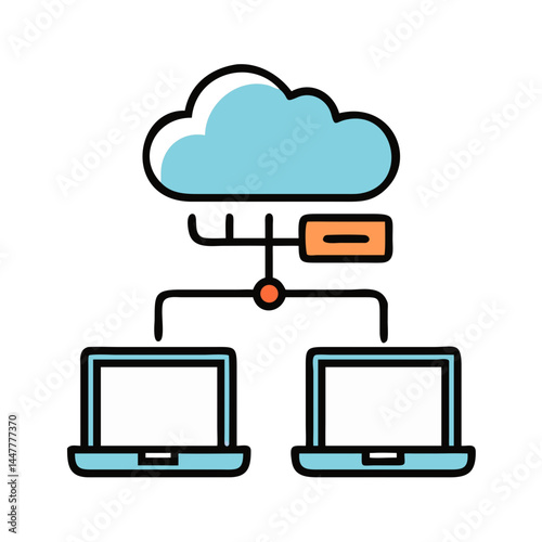 Cloud Network Connected to Laptop and Mobile Device Icon Representing Cross-Platform Sync and Remote Access