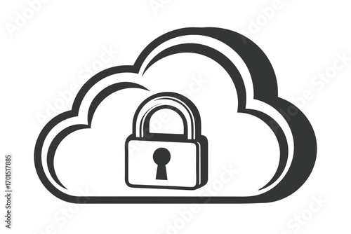 Cloud Security Concept, Outline Icon, Isolated Object, Padlock Element