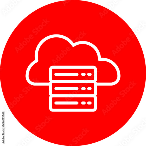 Cloud Server Vector Line White Circle Red