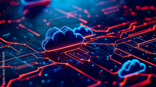 Cloud servers interconnected with glowing lines, representing cloud-based optimization.