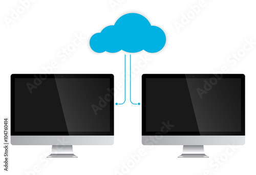 Cloud Service Concept two PC computers. Vector