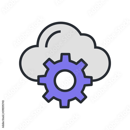 Cloud settings icon in flat design style.