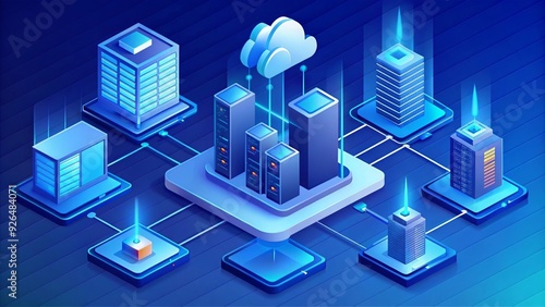 Cloud storage application isometric Illustrating a modern digital service for secure data download and network computing