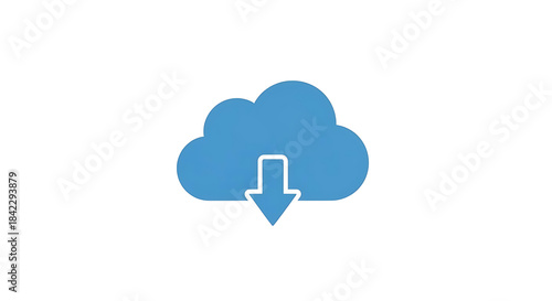 Cloud storage download icon, blue cloud symbol with arrow pointing down, data transfer and online storage concept