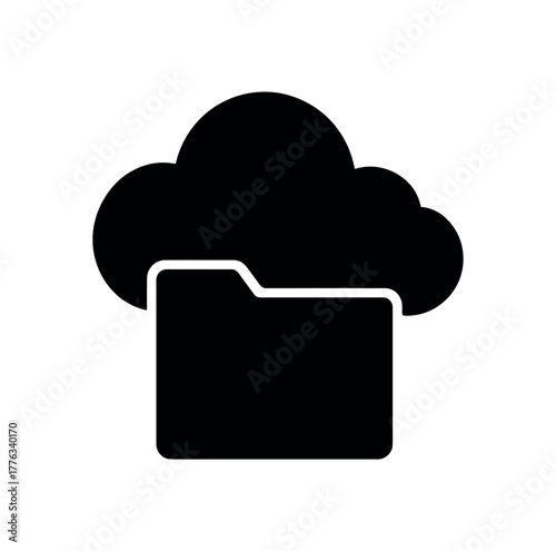 cloud storage flat black solid vector illustration isolated on white background