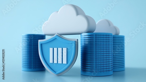 Cloud Storage Security Concept with Shield and Data Servers in Modern 3D Illustration