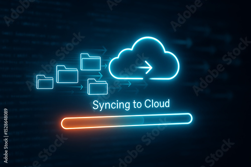 Cloud Sync Animation with Glowing Digital Files Transferring to Cloud Storage for Secure Data Management and Futuristic Computing Solutions and Network Connectivity
