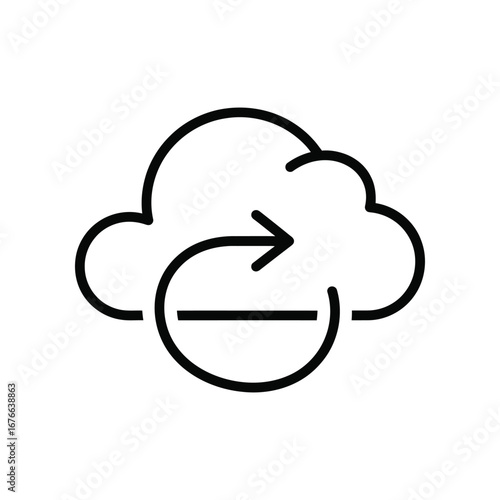 Cloud Synchronization: A minimalist icon showcases a cloud with a circular arrow, symbolizing data synchronization and cloud computing services.