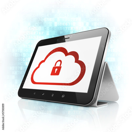 Cloud technology concept: Cloud With Padlock on tablet pc
