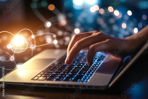 Cloud technology. Data storage and backup. Networking and internet service concept. Man using laptop computer and mobile phone with cloud computing diagram.