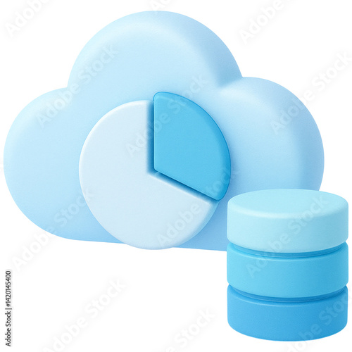 Cloud technology icon with pie chart and data storage symbolizing digital data management