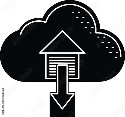 Cloud Upload Data Silhouette Black Vector – High-Quality Graphic Download