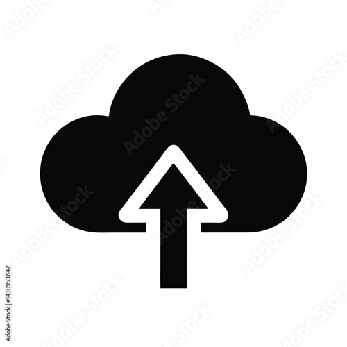 Cloud Upload Glyph Icon Silhouette Vector Illustration