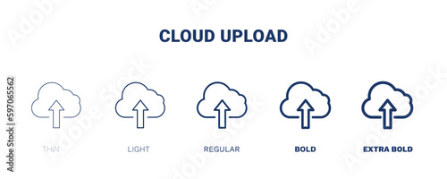 cloud upload icon. Thin, light, regular, bold, black cloud upload icon set from user interface collection. Outline vector. Editable cloud upload symbol can be used web and mobile