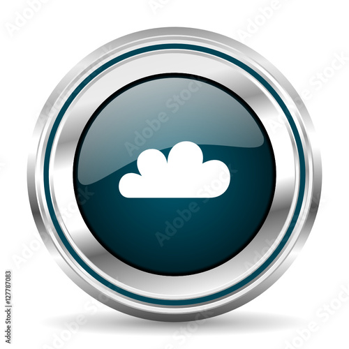 Cloud vector icon. Chrome border round web button. Silver metallic pushbutton.