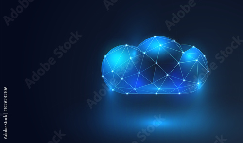 Cloud wireframe technology. Data transmission wire frame digital vector background. Downloading transfer cloud application. Network secure technologies. Futuristic upload stream. Computing system.