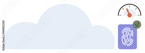 Cloud with a fingerprint scanner and speed gauge representing secure, fast data access. Ideal for digital security, technology, cloud computing, authentication, data protection, innovation, simple